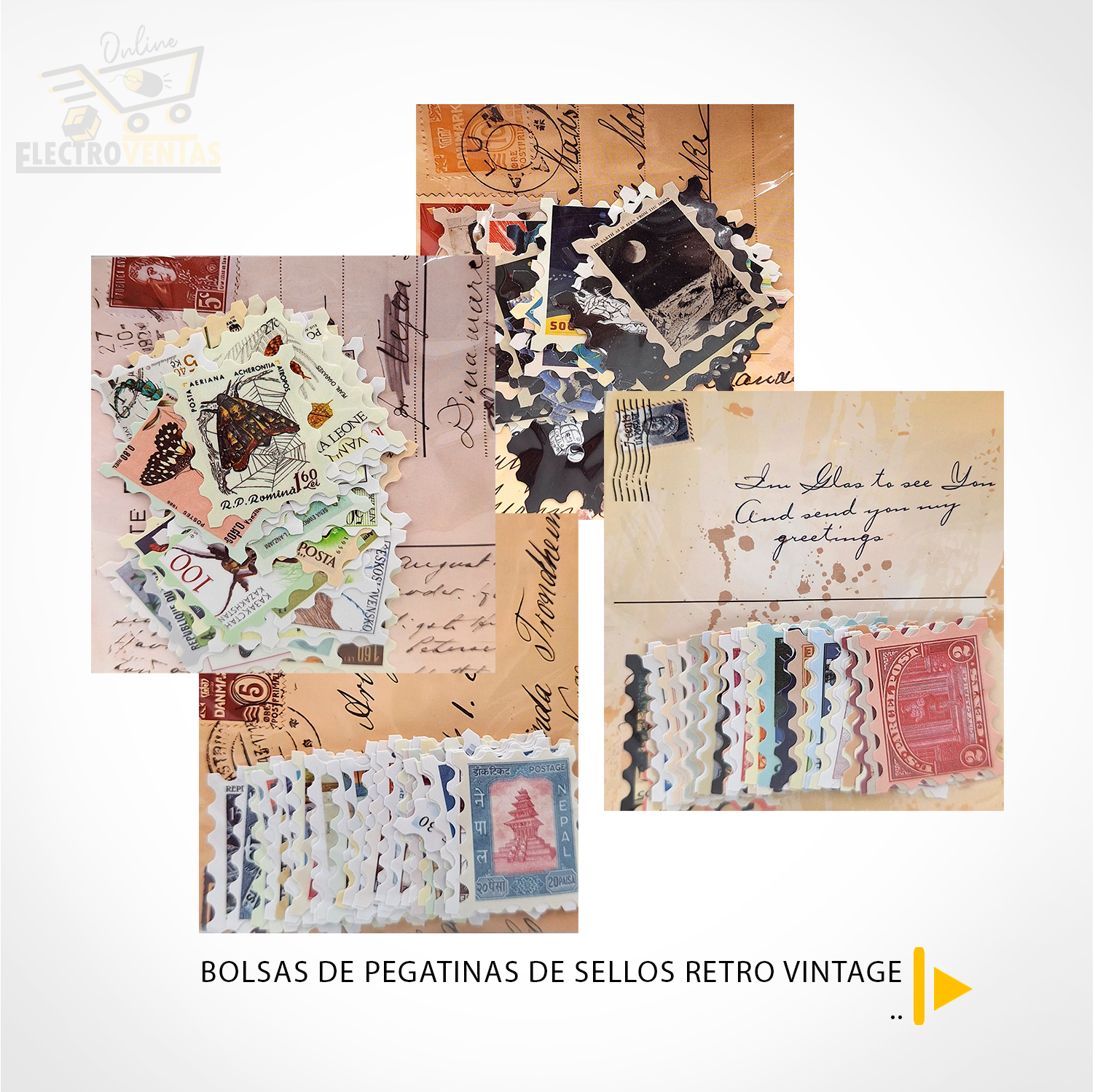 "KR05-05" BOLSA DE PEGATINAS DE SELLOS RETRO VINTAGE (OFERTA)